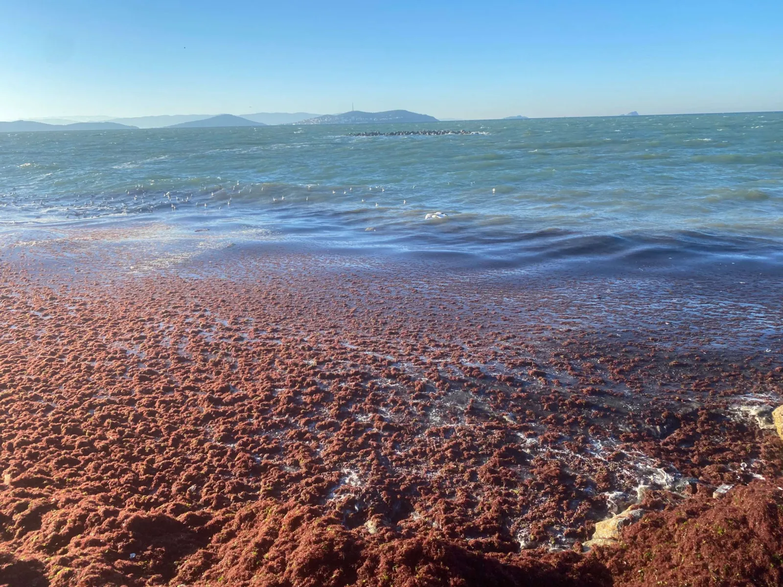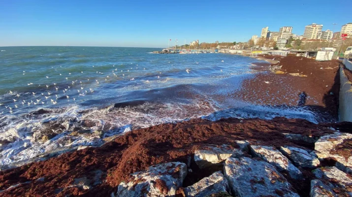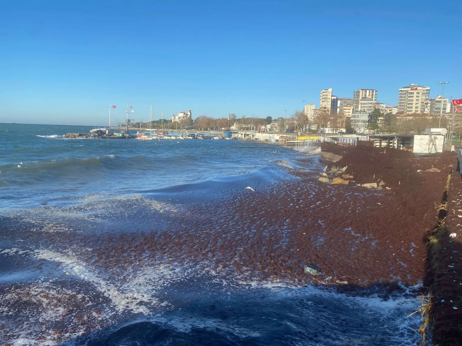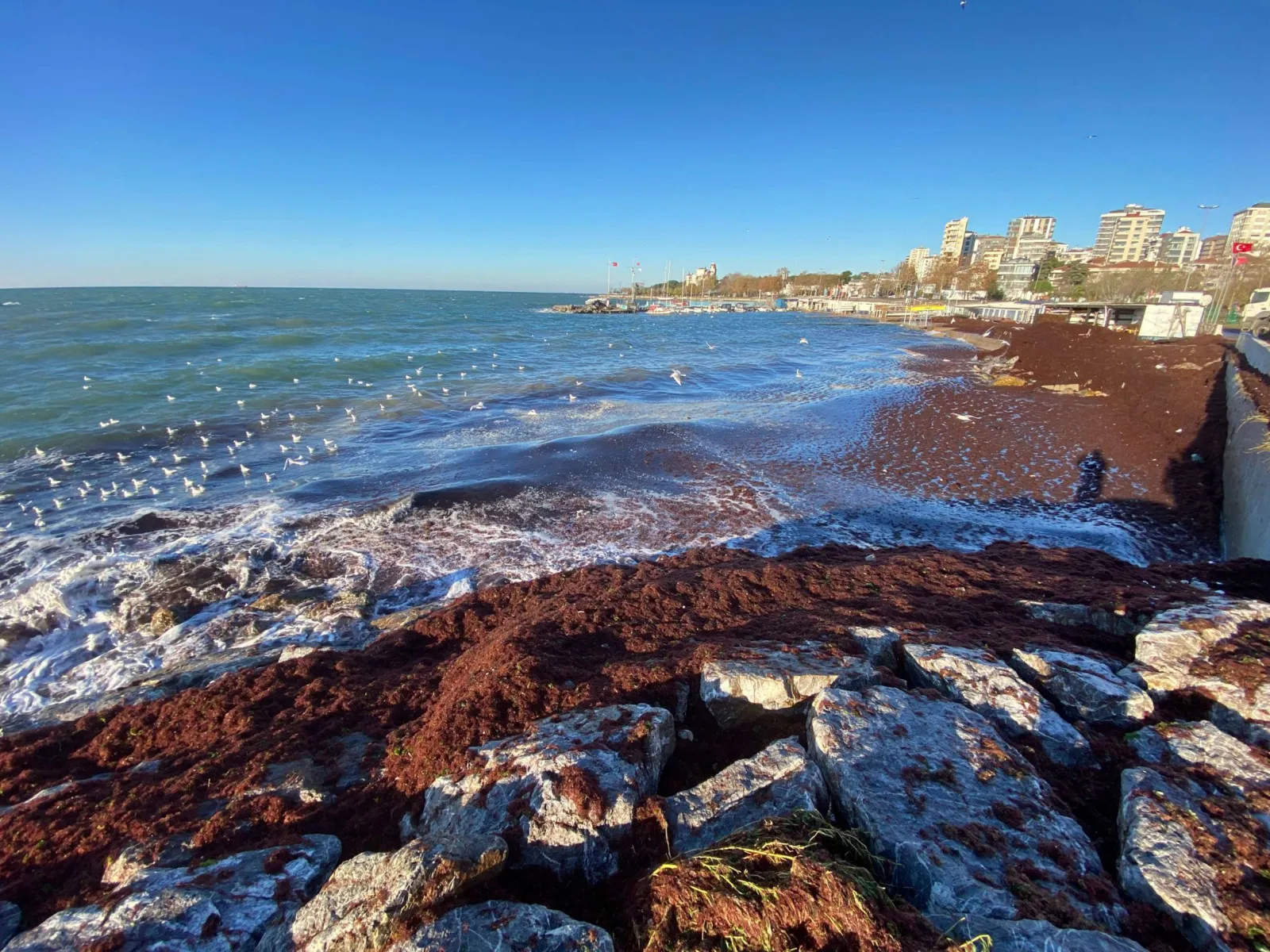 İstanbul‘da etkili olan lodos nedeniyle Kadıköy Caddebostan sahilini kırmızı yosunlar kapladı. Sahile vuran dev dalgalar nedeniyle kırmızı renkli yosunlar sahil ve kayalıkları kapladı. İstanbul Büyükşehir Belediyesi ekipleir de sahil boyunca kırmızı renkli yosunları iş makineleriyle topladı. Kamyonlar dolusu kırmızı yosun toplandı.