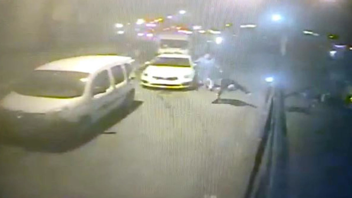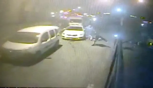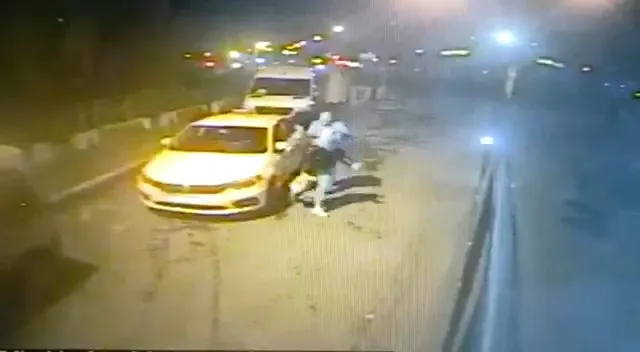 Taksici ile kadın müşteri arasında yaşananlar güvenlik kamerasına yansıdı. Görüntülerde, taksici ile kadın arasında itişme yaşandığı görülüyor. Tartışma sırasında taksici aracına binmek isterken kadın kapıyı kapatıyor. Bu sırada, taksici müşteriyi iterek yola doğru fırlatıyor. Yere düşen kadın o sırada yoldan geçen otobüsün altında kalmaktan son anda kurtuluyor.