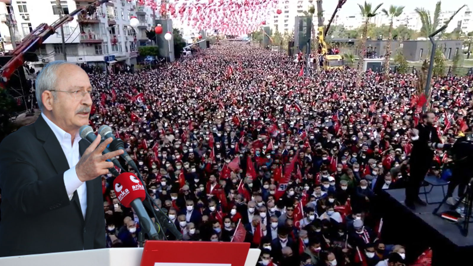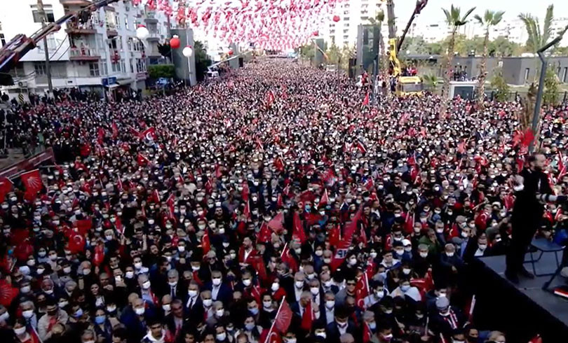 CHP, Mersin‘de ‘Milletin Sesi’ sloganıyla miting düzenliyor. CHP lideri Kılıçdaroğlu, mitingde konuşma yaptı. Kılıçdaroğlu, “Değişim rüzgarları esiyor artık Türkiye’de. Buna karşı durmak mümkün değildir. Hangi duvarı örerlerse örsünler, halk varsa bitmiştir. Milletin sesi tüm Türkiye’de. Hiç meraklanmayın, göreceksiniz Erzurum’dan, Hakkari’den, Kars’tan, Ardahan’dan, Tekirdağ’dan göreceksiniz. Halkın adalet, hak istediğini göreceksiniz. Duyar mı bunu saray? Ey saray duy diyeceğiz. Geliyor gelmekte olan diyeceğiz. Beraber söyleyeceğiz. Selam olsun, geliyor gelmekte olan” dedi.
