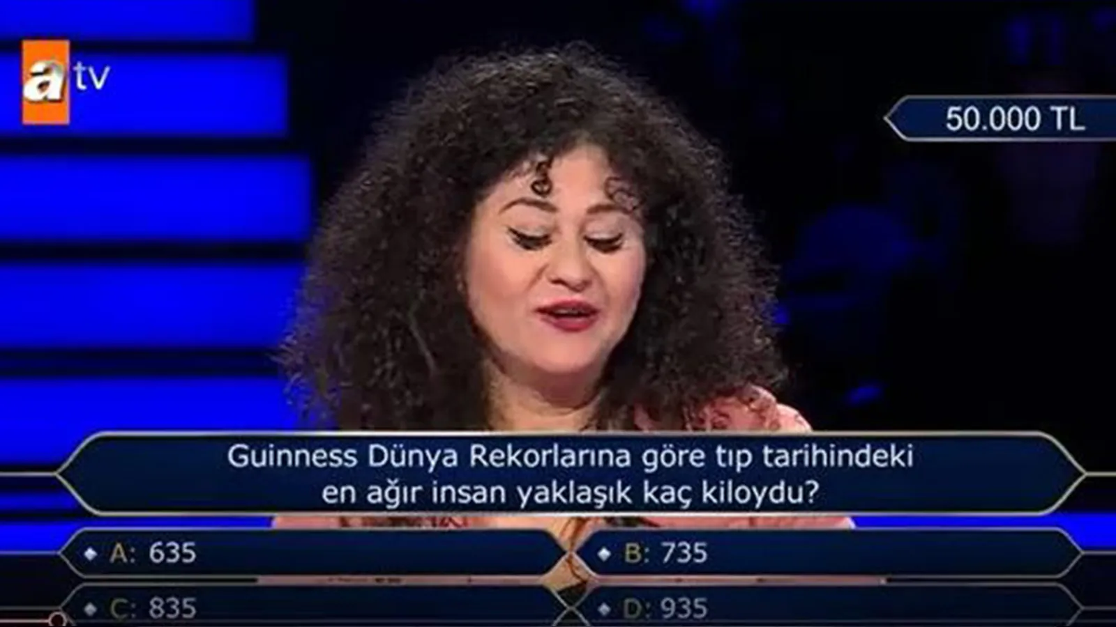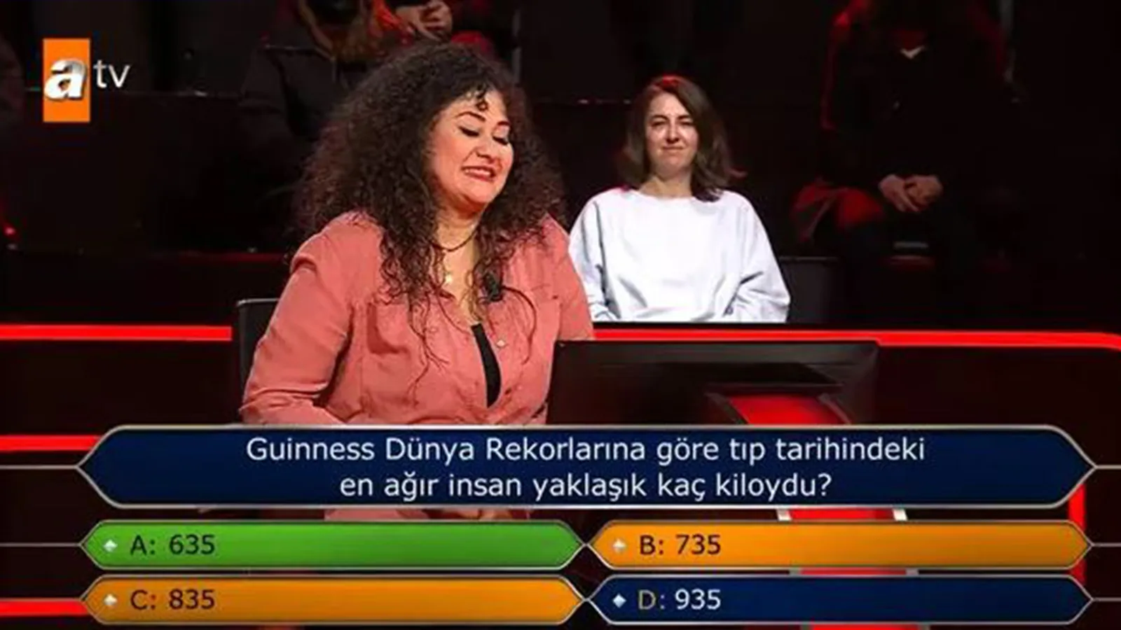 Kim Milyoner Olmak İster’in dün ekranlara gelen bölümünde “Guinness Dünya Rekorlarına göre tıp tarihindeki en ağır insan kaç kiloydu?” sorusu dikkat çekti.