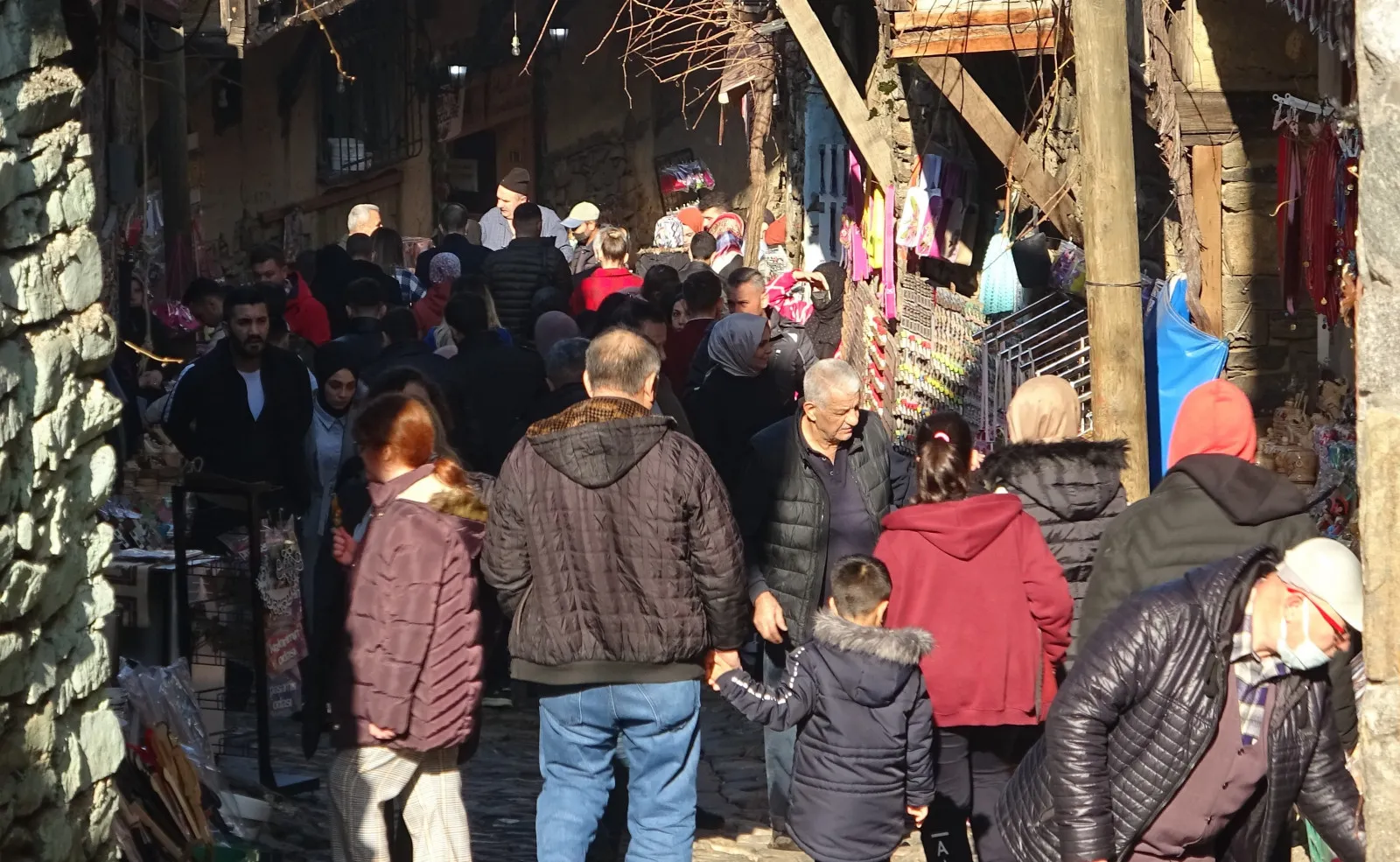 Kış ayında havayı güzel gören ziyaretçiler Türkiye’nin birçok şehrinden gezmek için Cumalıkızık’a geldi. Cumalıkızık sokakları doldu taştı. Özellikle cin aralığından geçmek isteyen vatandaşlar yoğunluktan dolayı dakikalarca sıra bekledi.