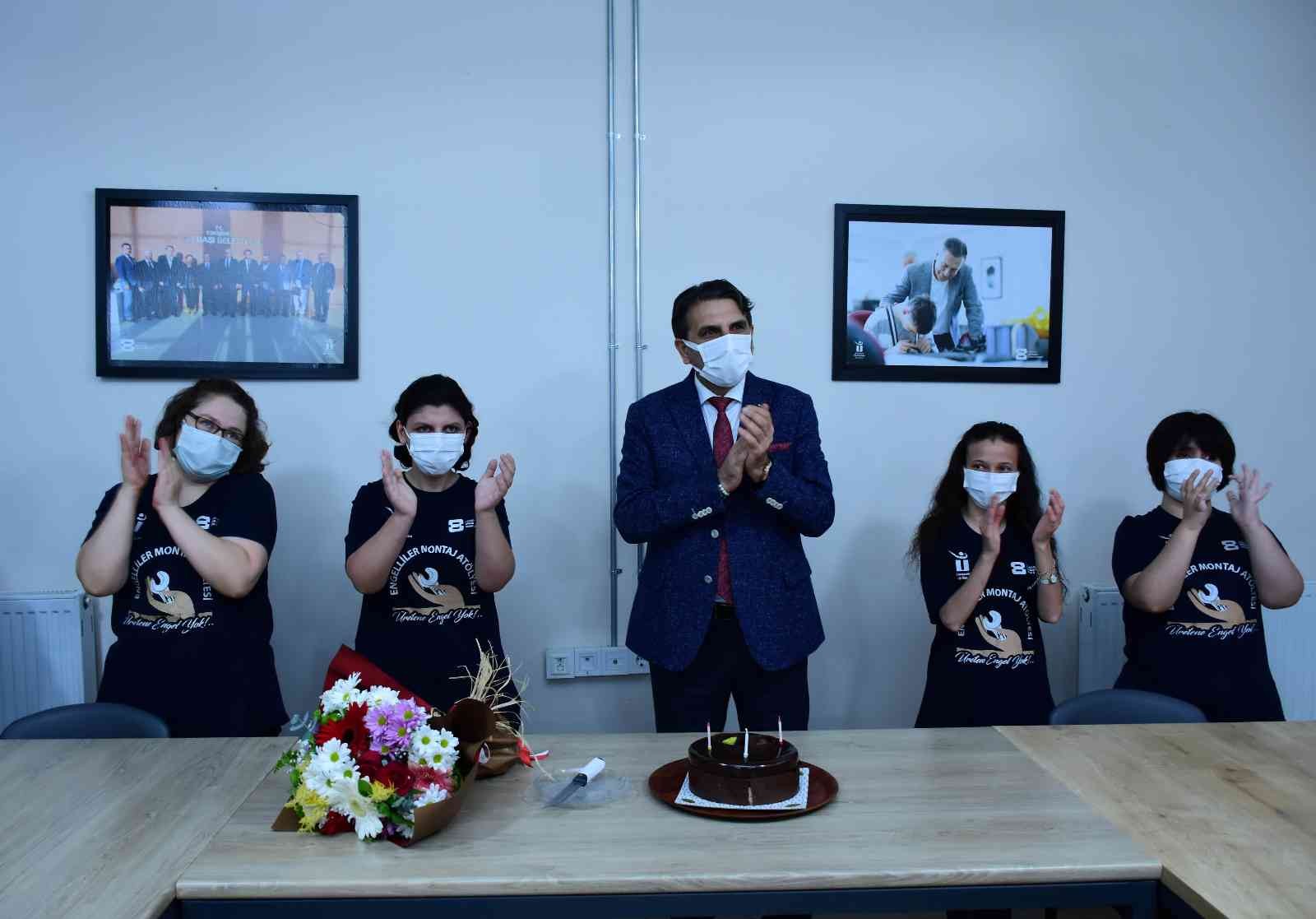 Daha sonra OSB Başkan Vekili Saraç ve gençler, günün anısına birlikte pasta kestiler.