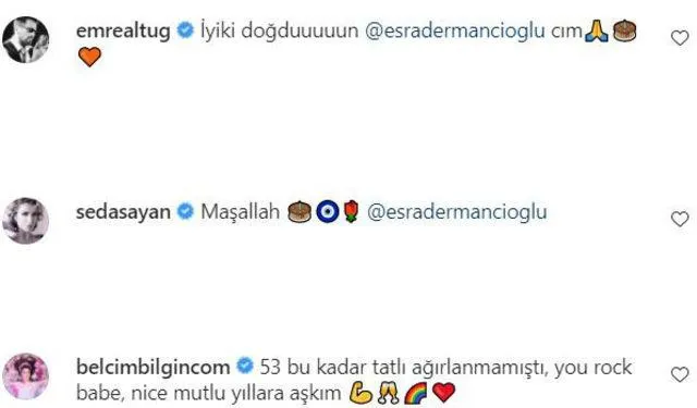 Ünlü oyuncunun paylaşımına, Emre Altuğ, Belçim Bİlgin ve Seda Sayan gibi pek çok ünlü isim yorum yaptı.