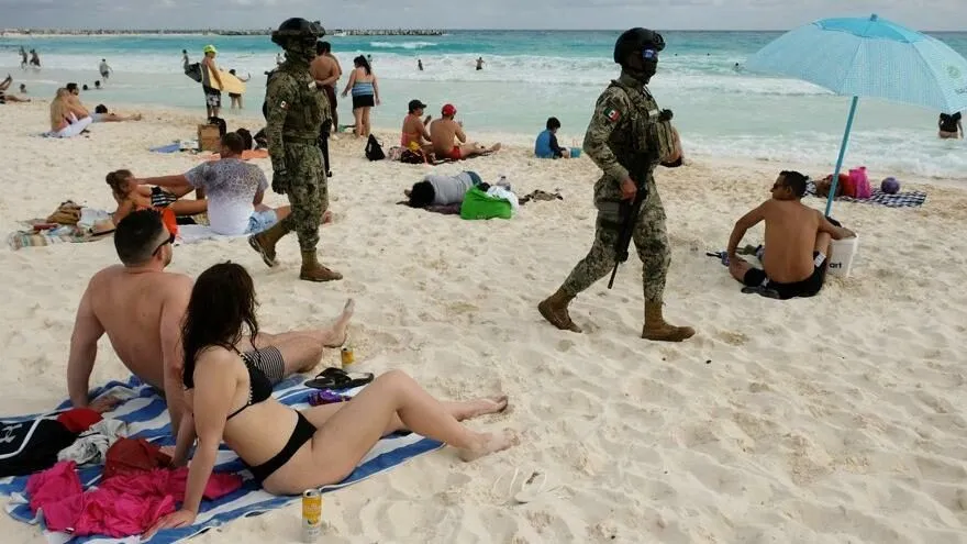 Meksika Cancun sahilinde binlerce asker tatilcilerin arasında devriye gezmeye başladı