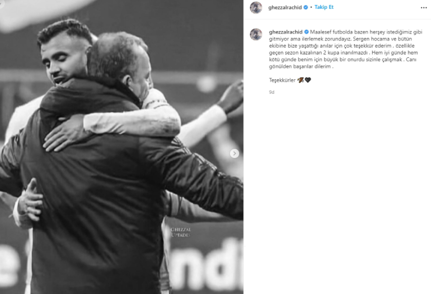Beşiktaş‘ta Sergen Yalçın dönemi bugün resmen kapandı. Beşiktaşlı oyuncu Rachid Ghezzal, Instagram hesabından Sergen Yalçın paylaşımında bulundu.
