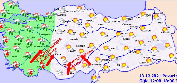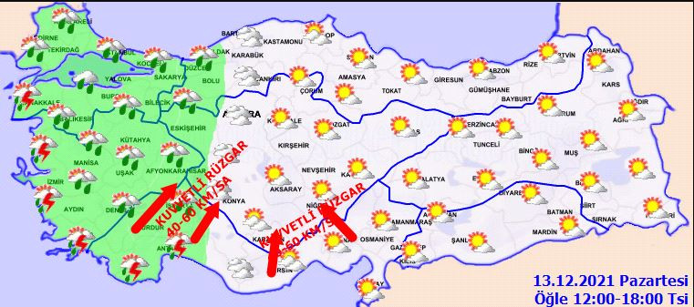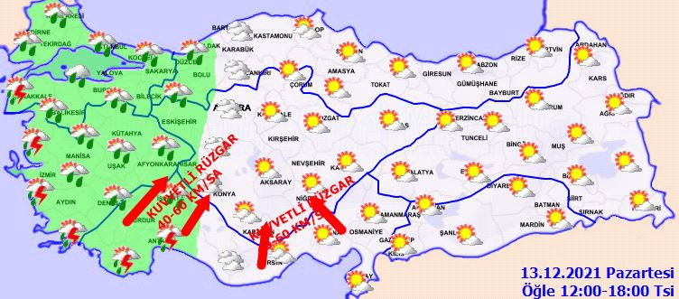 Parçalı ve çok bulutlu, öğle saatlerinden itibaren batı kesimleri yağmur ve sağanak yağışlı
