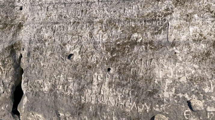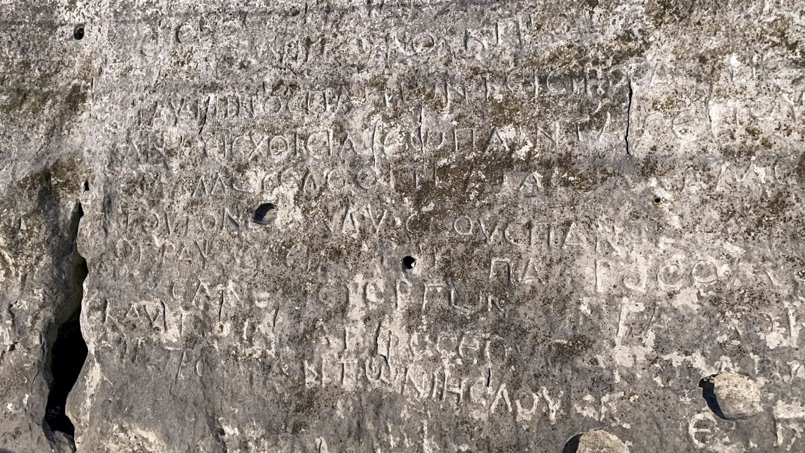 Grekçe yazıtta burada yaşamış önemli bir şahsiyet genç yaşta ölen eşi için şunları yazmış, “Burada vaktiyle evlenerek memleketime getirdiğim iyi duygular taşıyan Athenais yatıyor. Bu mezarın önünden gelip geçenlerden onu bir gül ile ya da başka bir çiçekle onurlandırana tüm göksel güçler bağışlayıcı olsun.”