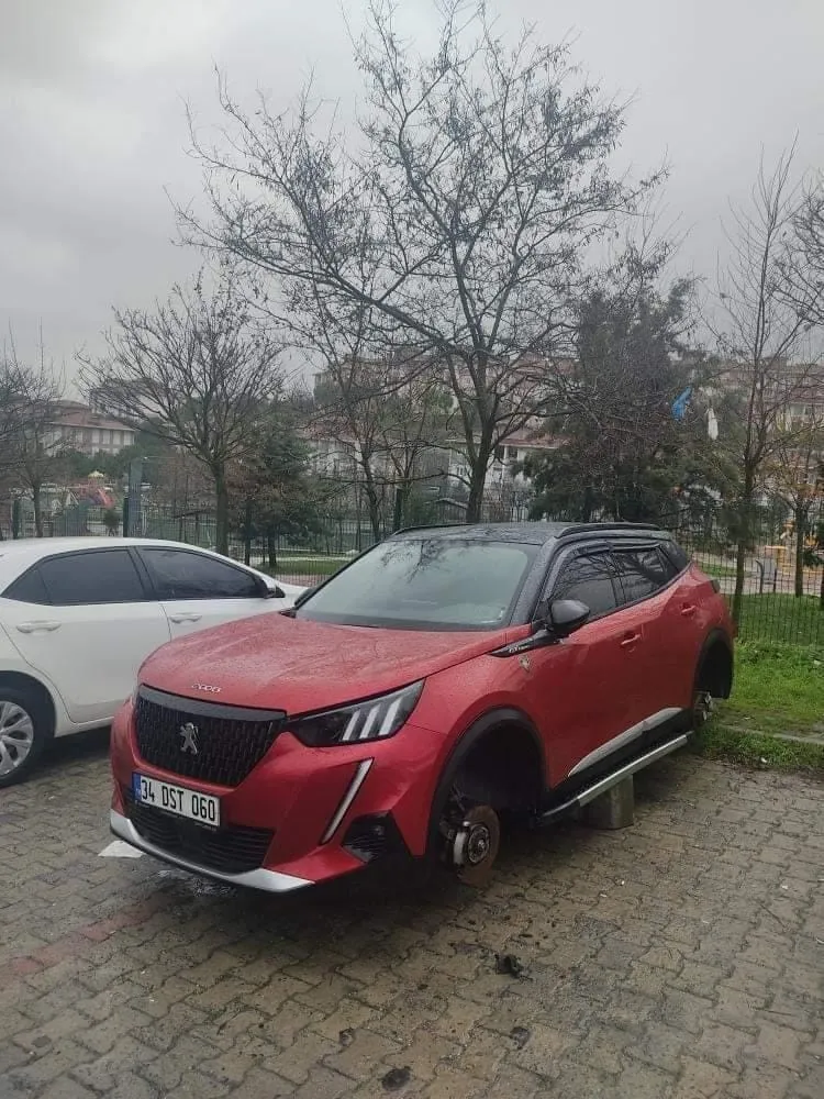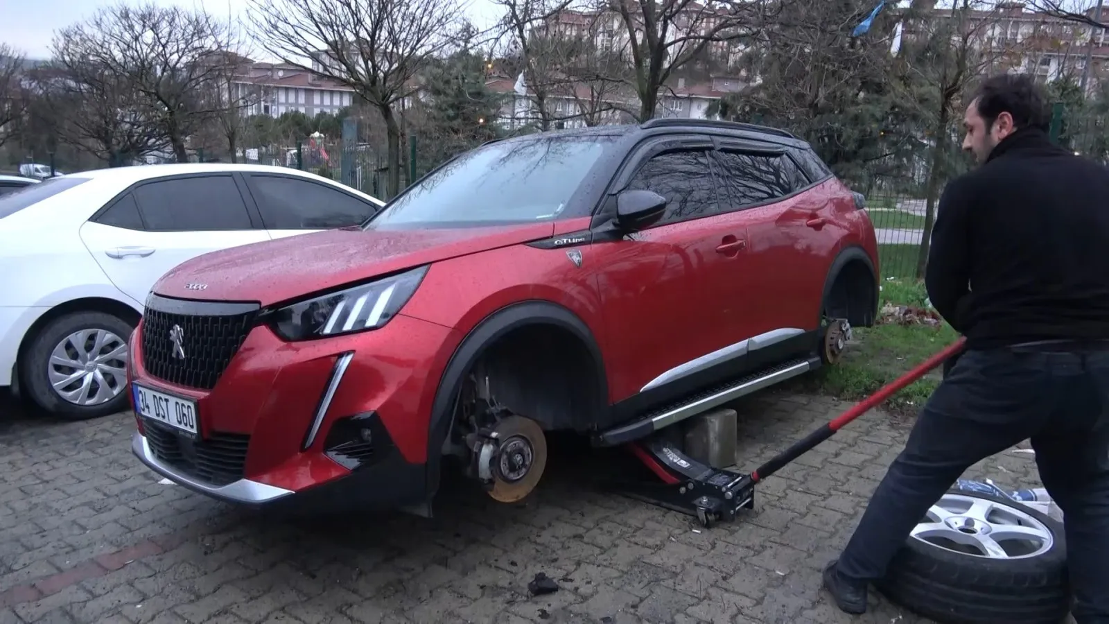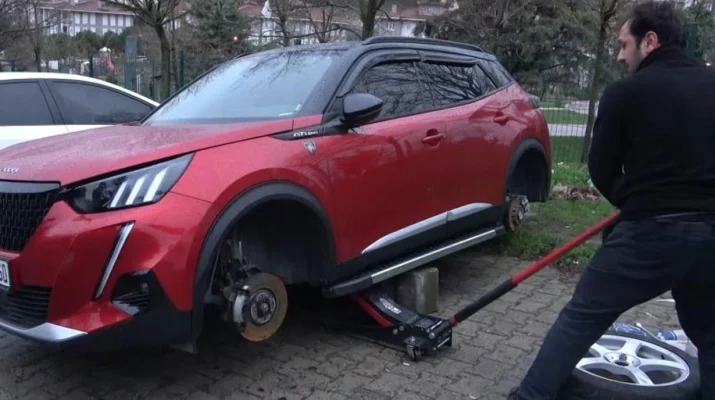 İstanbul’da Arnavutköy Taşoluk Mahallesi’nde geçtiğimiz gece bir sitenin otoparkına giren hırsızlar, lüks otomobilin lastiklerini ve özel tasarım jantlarını gözlerine kestirdi. Otomobili kaldırım taşlarının üzerine sabitleyen hırsızlar, aracın 4 lastiğini birden sökerek kayıplara karıştı. Sabah işe gitmek için arabasına yönelen İsmail Akbeyik ise aracının lastiklerinin olmadığını fark edince şoke oldu. Yaklaşık 40 bin TL’lik ilginç hırsızlık sonrası araç ise böyle görüntülendi.