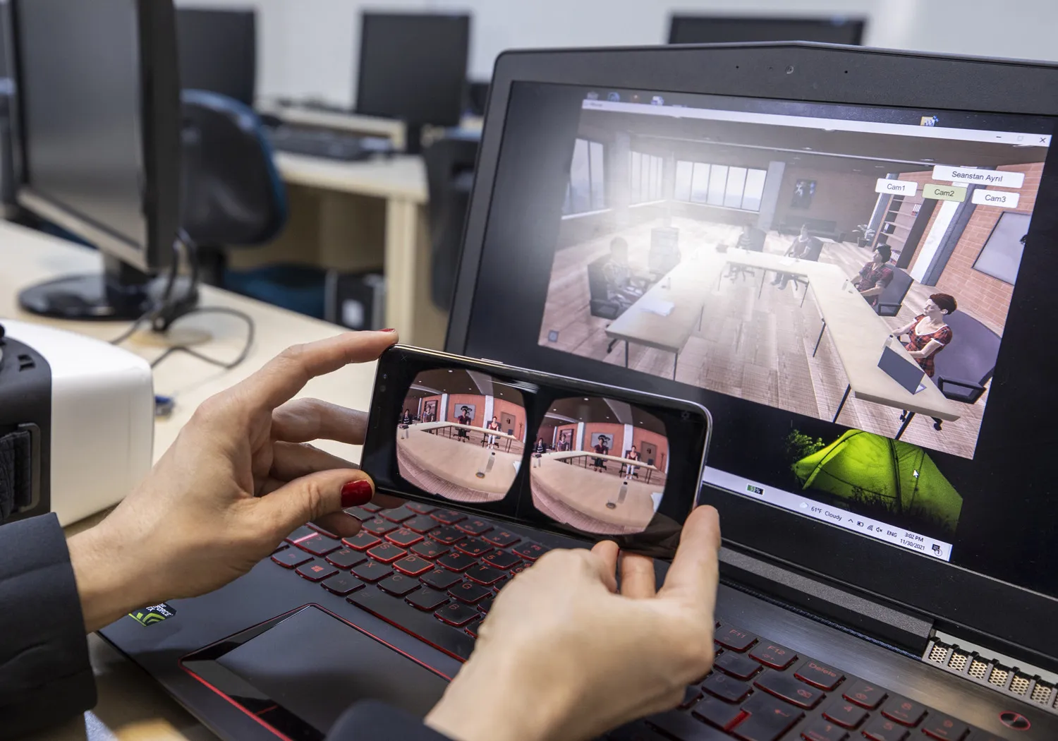 Tokel, geliştirdikleri sanal okulda, fiziksel gerçeklik ve bulunuşluk hissinin hem sanal gözlüklerle hem de masaüstü sanal gerçeklikle sağlanabildiğini anlattı.