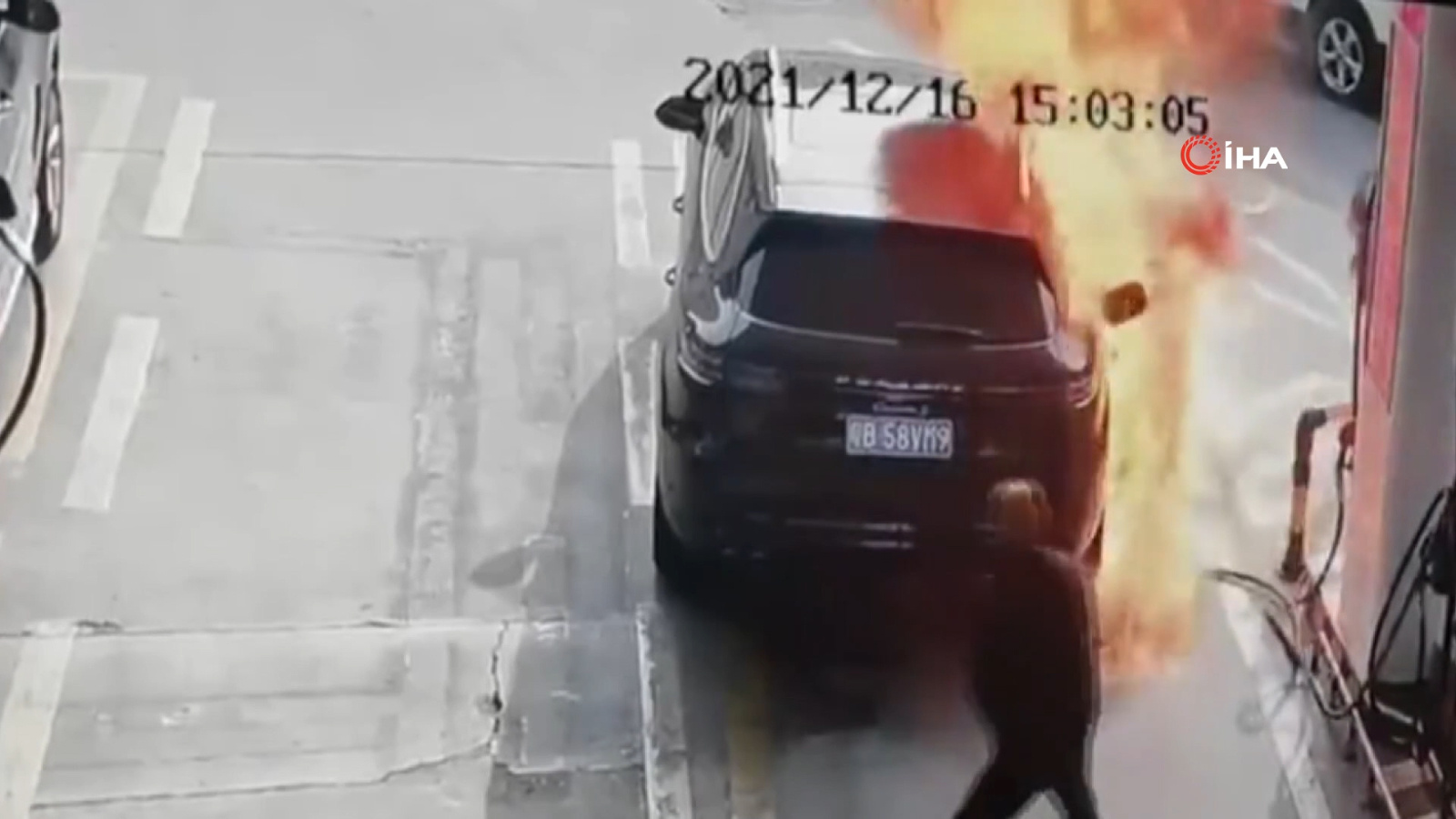 Çin’in Shenzhen kentinde güvenlik kamerasına yansıyan görüntülerde, bir adamın dolum yapılan araca yaklaşarak akaryakıt pompasını çıkardığı ve ateşe verdiği görüldü. Araç alevler içinde kalırken, söz konusu şahıs koşarak uzaklaştı. Aracın arkasındaki bir adamın sürücü koltuğunun kapısını açmasıyla bir kadın kendini can havliyle dışarı attı. Görevliler ise kısa sürede alevlere müdahale etti. Olayla ilgili soruşturma başlatılırken, pompayı ateşe veren şahıs yakalanarak gözaltına alındı.