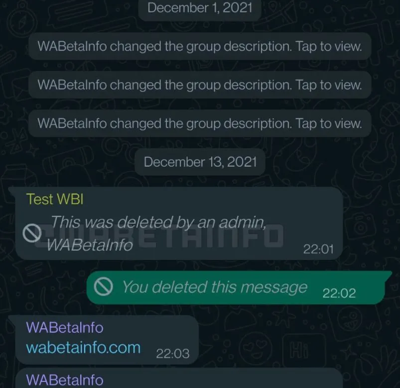 Gruptaki bir mesajın yönetici tarafından silinmesi durumunda ise mesaj kutusunda “Bu mesaj yönetici tarafından silinmiştir” ibaresi gösterilecek.