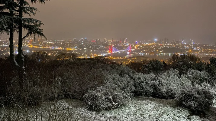 İstanbul’da mevsimin ilk kar yağışı sonrası birçok ilçe beyaza büründü. Gece saatlerinde etkisini artıran kar yağışı, manzarası ve güzelliği ile bilinen Çamlıca Tepesi’ni beyaza bürüdü. Kar yağışını fırsat bilen vatandaşlar ise Çamlıca Tepesi’ne gelerek vakit geçirdi. Çamlıca’da oluşan manzara ise kendine hayran bıraktı.