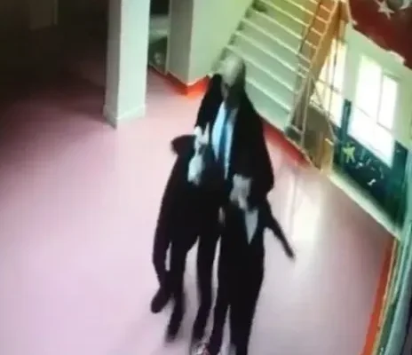 Okul müdürünün 2 öğrenciye koridorda uyguladığı şiddet anları okulun güvenlik kameralarına yansıdı.