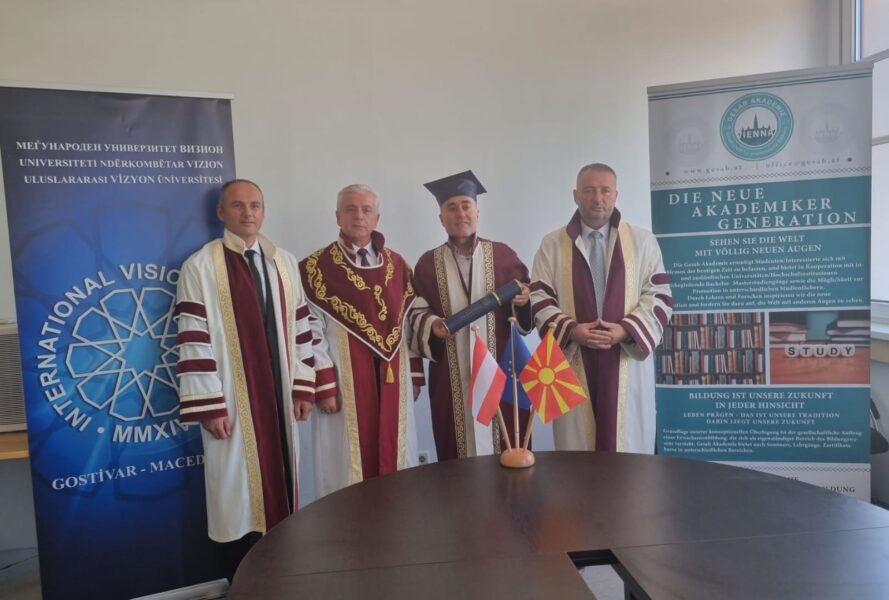 Kuzey Makedonya, Türkiye ve Avusturya’dan hocaların katılımıyla Prof.Dr. Musa Musai danışmanlığında hazırlanan Doktora Tezinin savunmasında VİZYON Üniversitesi Rektörü Prof. Dr. Fadil Hoca ve Rektör Yardimcisi Prof. Dr. Mensur Nuredin’in yanısıra,