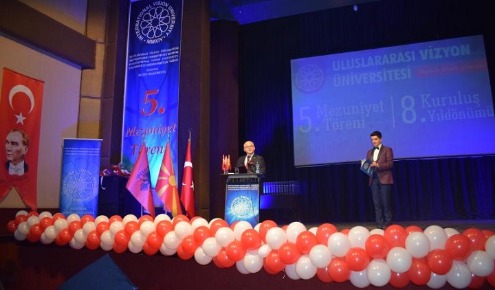 Uluslararası Vizyon Üniversitesi’nin 8. Kuruluş Yıldönümü ve 5, Mezuniyet Töreni Uluslararası Vizyon Üniversitesi Gostivar Kültür Merkezi’nde gerçekleşti.