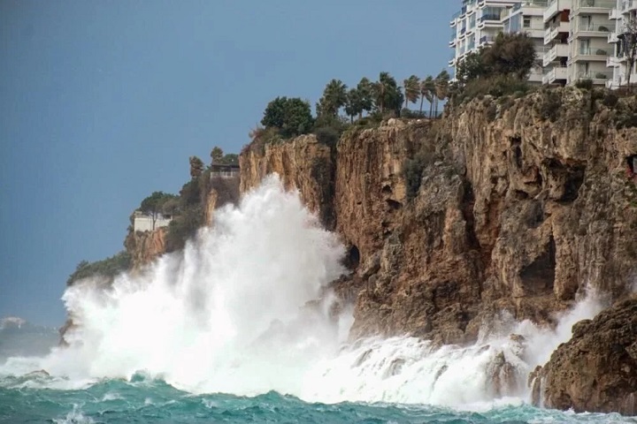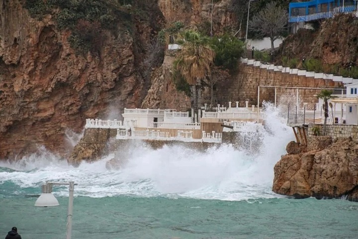 Meteoroloji’nin sağanak uyarısında bulunduğu Antalya’da, saatteki hızı 62 kilometreyi bulan rüzgar etkili oluyor. Konyaaltı Sahili’nde büyük dalgalar oluştu. Türk Hava Yolları 11 seferini iptal ederken, büyükşehir belediyesi bünyesinde kriz masası oluşturuldu.
