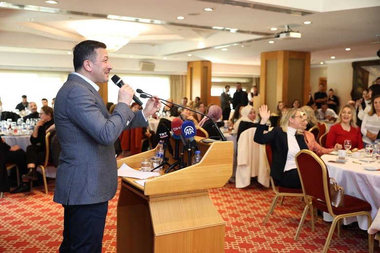 Burada bir konuşma gerçekleştiren Hamza Dağ, İzmir’i ayağa kaldırma yolunda, kadınların iş gücüne katılımına, istihdam edilmesine çok önem verdiklerini vurguladı. Dağ, “Kadınların fırsat ve kaynaklara erişimlerinin kolay olması amacıyla girişimci, kendi işini kurmak isteyen kadınlarımız için çeşitli kapsayıcı proje uygulamaları hazırladık. Güçlü şehirlerin anahtarının güçlü kadından geçtiği bilinçle hem kadınlar hem de aileler için 13 Şubat’ta açıklayacağımız İzmir Beyannamemizde çok önemli başlıklar bulunmakta. Bu şehrin makus talihini kadınlarımızla değiştireceğiz. Biz İzmir’de sırtımızı dağ gibi sizlere dayadık. Şunu çok iyi biliyoruz ki; annelerimiz, kadınlarımız bizim ardımızda oldu mu bizim aşamayacağımız engel, başaramayacağımız iş yoktur.” ifadelerini kullandı