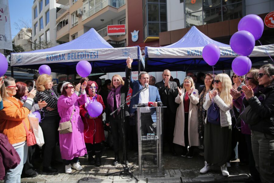 Mutlu’dan övgü dolu sözlerle bahseden Konak Belediye Başkanı Abdül Batur ise “Sayın Nilüfer Çınarlı Mutlu’nun bizden sonra bu süreci en güzel şekilde yürüteceğine bütün kalbimle inanıyorum. Kendisinin hep yanında olacağım. Tebrik ediyorum şimdiden” diye konuştu. Batur, Mutlu’nun elini havaya kaldırarak birlikte zafer pozu verdi. Konuşmaların ardından gerçekleştirilen yürüyüşe de katılan Mutlu, etkinlik sonunda kadınlarla birlikte mor balon uçurdu.
