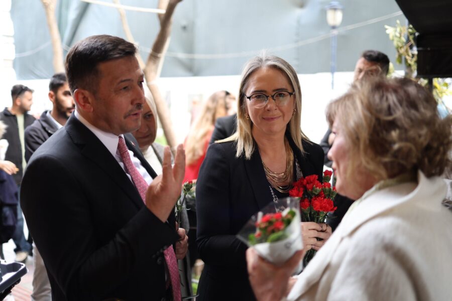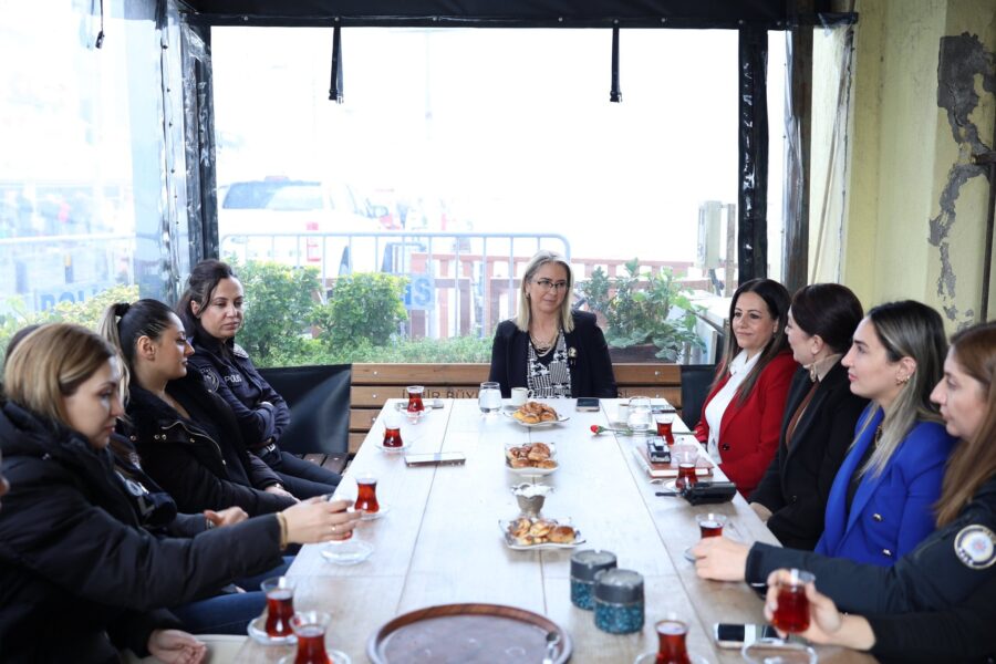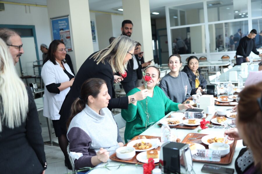 Konak Adayı Çankırı ardından Behçet Uz Çocuk Hastalıkları Hastanesi’nde görev yapan kadın sağlık çalışanlarına çiçek dağıttı. Yemekhanede doktor ve hemşirelerle birlikte yemek yiyen Çankırı ardından Tarihi Kantar Polis Karakolu’nda kadın polisler ile çay içti.
