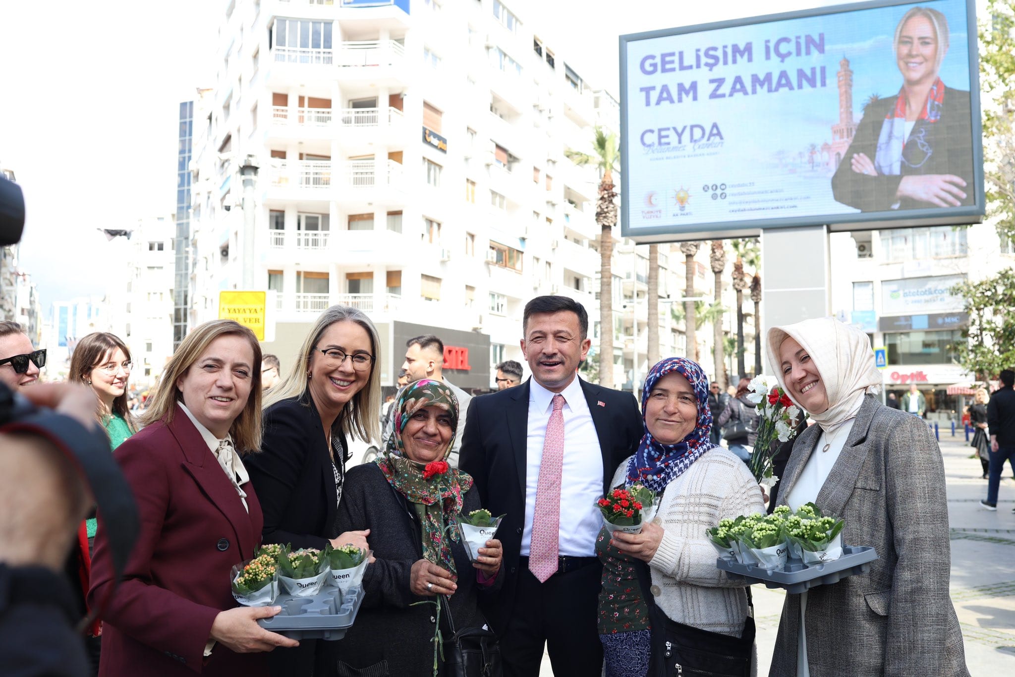 Yerel seçimlere 23 gün kala saha çalışmalarına hız kesmeden devam eden AK Parti Konak Belediye Başkan Adayı Ceyda Bölünmez Çankırı, KADEM’in 8 Mart Dünya Kadınlar Günü’ne özel düzenlediği ‘Dünyanın Yükünü Taşıyan Kadınlarımız’ temalı buluşmaya katıldı. İzmir Valisi Süleyman Elban’ın eşi İrem Beyza Elban, İzmir İl Milli Eğitim Müdürü Ömer Yahşi ile kent genelindeki okullarda görev yapan öğretmenler ve KADEM üyelerinin bulunduğu toplantıda Çankırı günün özelinde karanfil dağıttı. Kentin en önemli ihtiyaçları arasında özellikle çalışan anneler için kreş sayısının yetersizliğini vurgulayan Çankırı burada yaptığı konuşmada Konak’ta tuvaleti dışarıda olan okulları hatırlatarak göre geldikleri andan itibaren bu sorunlara neşter vuracaklarını söyledi.