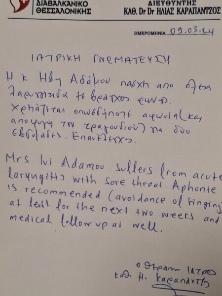 Ünlü Yunan Sanatçı İvi Adamou Hastane Raporunu da İstanbul Channel vasıtası ile sevenleri ile paylaştı.
