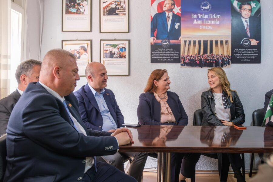 Başkan Adayı Mutlu, daha sonra Genel Başkan Yardımcısı ve İzmir Milletvekili Murat Bakan, Tekirdağ Milletvekili Faik Öztrak, Önceki Dönem Genel Sekreteri Bihlun Tamaylıgil ve Buca Belediye Başkan Adayı Görkem Duman ile birlikte Batı Trakya Türkleri Dayanışma Derneği İzmir Şubesi’ni ziyaret etti. Samimi bir ortamda gerçekleşen ziyarette konuşan Başkan Adayı Mutlu, “Benim ailem Yunanistan Serez’den mübadele ile önce Çeşme’ye sonra Tire’ye gelmişler. Suyun öte yakasından gelerek hepimiz İzmir’de buluştuk. Balkan Masası’nda yer alarak çalışmalarımızı arttırarak sürdüreceğiz” ifadelerini kullandı.