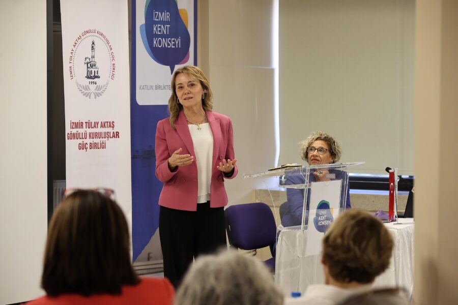 Konak Belediye Başkanı Nilüfer Çınarlı Mutlu, İzmir Kent Konseyi’nde düzenlenen Tülay Aktaş Gönüllü Kuruluşlar Güç Birliği toplantısına konuşmacı olarak katıldı. Homeros Salonundaki toplantıya Başkan Mutlu’nun yanı sıra ev sahibi İzmir Kent Konseyi Başkanı Nilay Kökkılınç, Tülay Aktaş İzmir Gönüllü Kuruluşlar Güç Birliği Dönem Sözcüsü Fatma Dayıoğlu, İzmir Kadın Kuruluşları Birliği Başkanı Gülsen Özkan ile gönüllü kuruluşların başkan ve temsilcileri yer aldı. İlginin yoğun olduğu etkinliğe Karabağlar Belediye Başkanı Helil Kınay da konuşmacı olarak katıldı. Yaptığı konuşmada önümüzdeki beş yıl boyunca Konak’ta somut işlere imza atacaklarını dile getiren Başkan Mutlu, ilk etapta büyük ihaleler gerektirmeyen küçük dokunuşlarla, ileride büyük ve somut sonuçlar alacaklarını ifade etti. Başkan Mutlu, sözlerini şöyle sürdürdü: “Somut işler anlatıyorum çünkü ben Konak’a somut iş yapmaya geldim. Dolayısıyla iş yapma zamanı, diyerek yola çıktık. Tabii bu iş yapmada birliktelik çok önemli. Değişen Büyükşehir yasasıyla ilçe belediyeleri müdürlük gibi tarif edilir oldu yasada. Bu da sizin bütçe olarak elinizi kolunuzu bağlıyor. Ama bu bir mazeret değil. Seçim çalışmasına hazırlanırken Genel Merkezimizde yaptığım sunumun başlığını ‘Mazereti Olmayan Kent Konak’ diye koymuştum.”