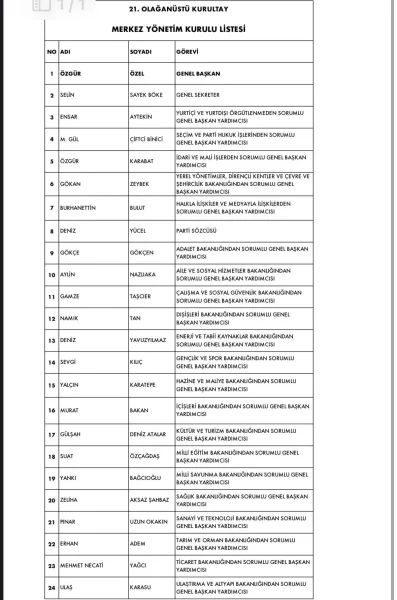 Kurultayın ardından yapılan ilk parti meclisi toplantısında Özel, yeni MYK’sını belirledi. Kurultay öncesi MYK’ya göre iki değişiklik yapıldı.
