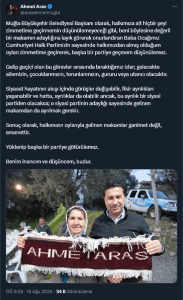 İki büyükşehir belediye başkanının daha AKP ile görüştüğü öne sürülürken, Muğla Büyükşehir Belediye Başkanı Ahmet Aras’ın adı geçmişti.