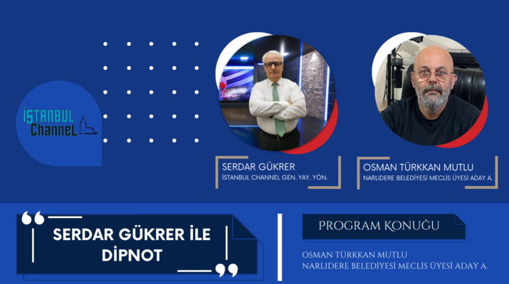 İstanbul Channel Genel Yayın Yönetmeni Serdar GÜKRER’ in Hazırlayıp Sunduğu Dipnot Programın Konuğu Narlıdere Belediyesi Meclis Üyesi Adayı A. Osman Türkkan MUTLU’ ydu.